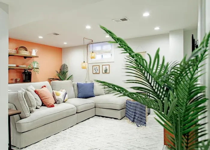 Private 1-Br Dc Residential-Style Stay Parking features a television and Wi-Fi, along with an iron and ironing board, and air conditioning, ensuring guests' relaxation and comfort. Guests staying in the apartment will enjoy the convenience of a hairdryer in the bathroom.
